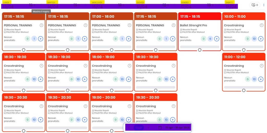 In questa pagina potrai trovare il nostro palinsesto per l’attività di CROSSTRAINING.